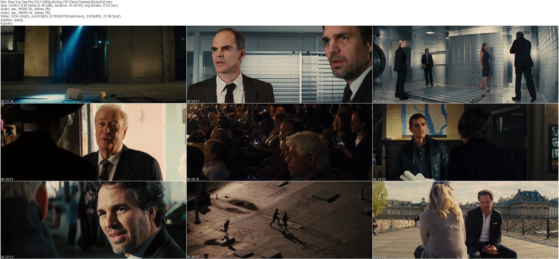 اکنون مرا میبینی یا حالا منو میبینی (به انگلیسی : Now You See Me) فیلمی جنایی ، رازآلود و مهیج محصول سال 2013 کشور آمریکا و فرانسه به کارگردانی لویی لتریر است که توسط کمپانی Summit Entertainment منتشر شد. فیلم در مورد یک مامور FBI و یک کاراگاه پلیس است که قصد دارند رد یک تیم شعبده باز متخلف را گرفته و آن ها را دستگیر کنند. زیرا این گروه در یکی از اجراهای خود به یک بانک دستبرد زده و پول سرقت شده را بین تماشاچیان پخش کردند و …